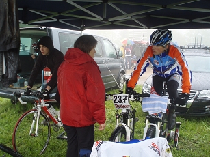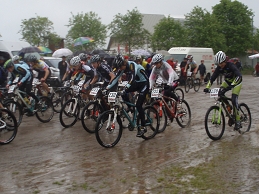 Nach Ende der ersten Runde lag ich bereits auf Rang 8 und war im Begriff weitere Plätze gut zu machen, doch nach der Hälfte der Renndistanz, die von dem Veranstalter aufgrund der widrigen Witterungsverhältnisse von vier auf drei Runden festgesetzt wurde, versagte bei mir die Hinterradbremse. Mit diesem Defekt schaffte ich es trotz Sturz am steilen Wiesenhang immer noch auf Platz acht liegend, bis in die Technikzone. Dort versuchten meine Betreuer verzweifelt den Defekt zu beheben, allerdings ohne Erfolg.