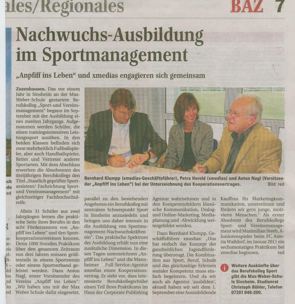Bericht über meine Ausbildung im Vereins- und Sportmanagement an der Max-Weber Schule in Sinsheim .