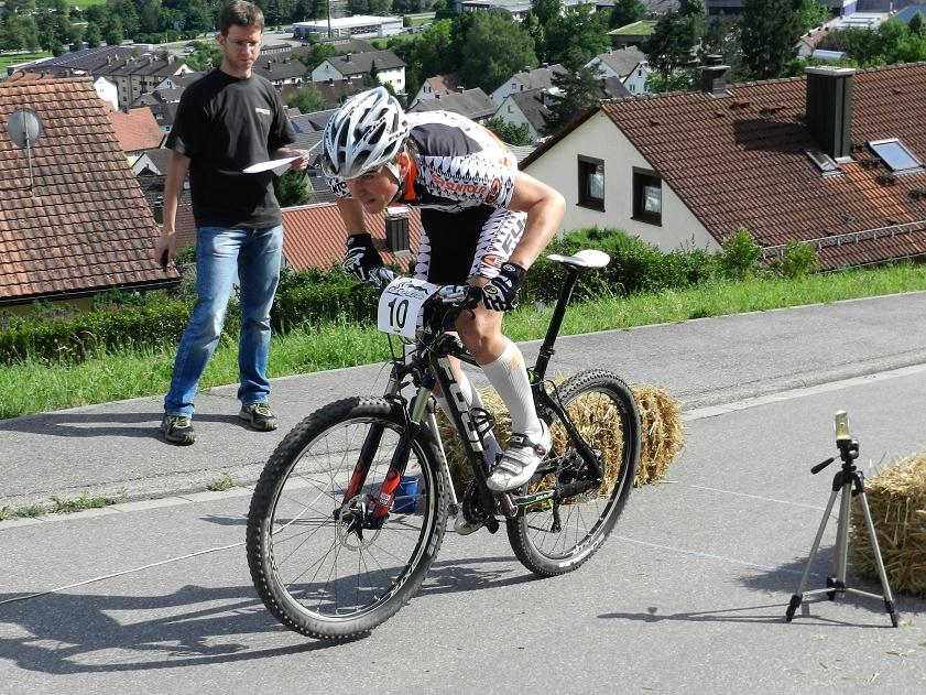 Hier mussten wir zuerst einen ca. 250 Meter langen Sprint gegen die Uhr fahren. Die hier erzielte Zeit galt der Zuordnung für die verschiedenen Startgruppen. In dem anschließenden Bergsprintrennen traten dann jeweils vier Konkurrenten auf einer Strecke von 500 Meter mit Steigungen bis zu 18 % gegeneinander an, wobei die zwei schnellsten jeder Gruppe sich für den nächsten Lauf qualifizierten.