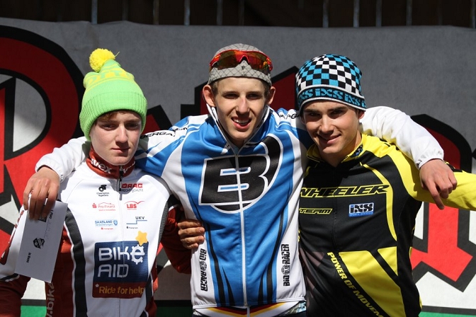 Auf der 2,7 km langen, selektiven Strecke ging ich von Beginn an höchst konzentriert und motiviert ins Rennen. So führte ich nach dem Start das Feld in die erste Runde und konnte mich somit in der dreiköpfigen Spitzengruppe festsetzen. Wir hatten bereits in der zweiten Runde einen Vorsprung auf den Rest des Feldes herausgefahren. Am Ende der dritten Runde hatte ich einen Kettenklemmer, sodass ich kurz vom Rad musste, um den Schaden zu beheben. Dadurch verlor ich wertvolle Zeit auf die beiden Führenden und dies war auch der Grund, warum der auf Rang 4 liegende Fahrer auf mich aufschließen konnte. Allerdings beteiligte dieser sich im weiteren Rennverlauf nicht an der Führungsarbeit und so musste ich das Tempo bestimmen. Dadurch ließ ich mich jedoch nicht aus dem Konzept bringen und so kam es, wie bereits beim letzten Lauf in Adenau, zu einem Sprint um Platz 3. Diesen konnte ich wieder für mich entscheiden.